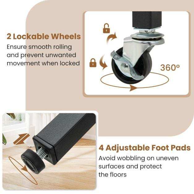 Easy Storage & Movement: Equipped with 2-tier mesh shelves and a middle storage rack, this folding dining table can hold kitchen supplies, tableware or office supplies. Besides, the 2 lockable wheels allow you to move the table effortlessly.