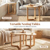 ● Versatile Placement: These tables can be nested together to save space or separated to serve different needs in a room. This flexibility makes them perfect as a nesting coffee table set for living rooms or as individual sofa side tables, adapting effortlessly to your layout.