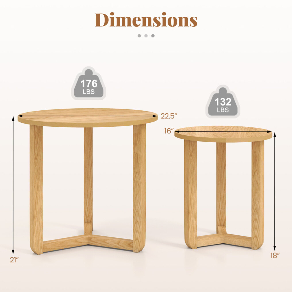 ● Sturdy Wooden Frame: Built with a stable tripod structure from solid rubber wood, the tables offer impressive strength, supporting up to 176 lbs and 132 lbs respectively. This robust construction ensures your sofa side table set of 2 is both a enduring and reliable piece of furniture.