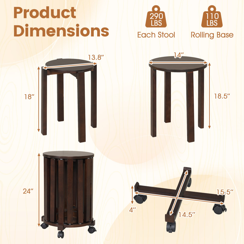 ● 95% Pre-Assembled Convenience: With wood stools functionality in a compact form, the 4 stools come with fully pre-assembled, while only the base needs quick assembly.