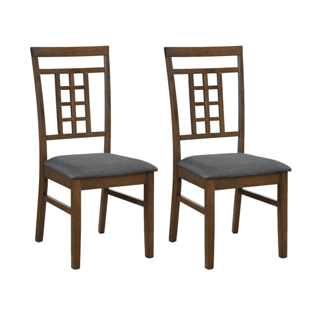 Rubber Wood Dining Chairs Set of 2 with Lattice Back-Brown