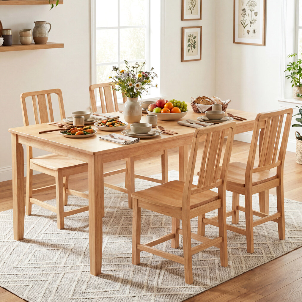 ● Experience Natural Elegance: Let the wooden dining chair set elevate your space with the organic charm of real rubber wood. The wood's unique grain patterns and rich tones create a warm, inviting atmosphere.