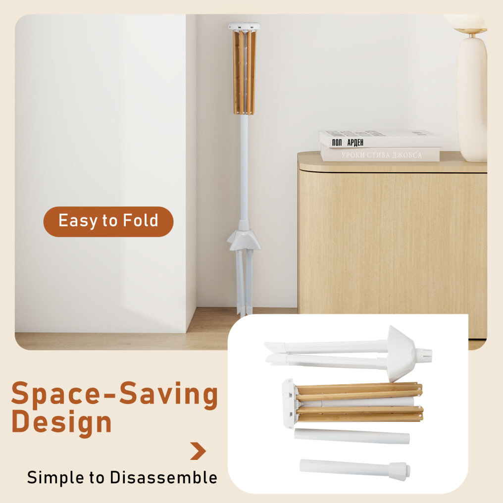 Dry your clothes easily and fold them effortlessly with our clothes drying rack! Featuring 8 bamboo rods and 40 hanger slots, this foldable drying rack can accommodate a variety of clothing types, offering hanging or flat drying options. Each rod easily folds and unfolds to fit your space, making this portable drying rack perfect for balconies, laundry rooms, or any other indoor space. Its lightweight, foldable design allows for easy storage and hassle-free transport, ideal for RV travel beyond indoor use.