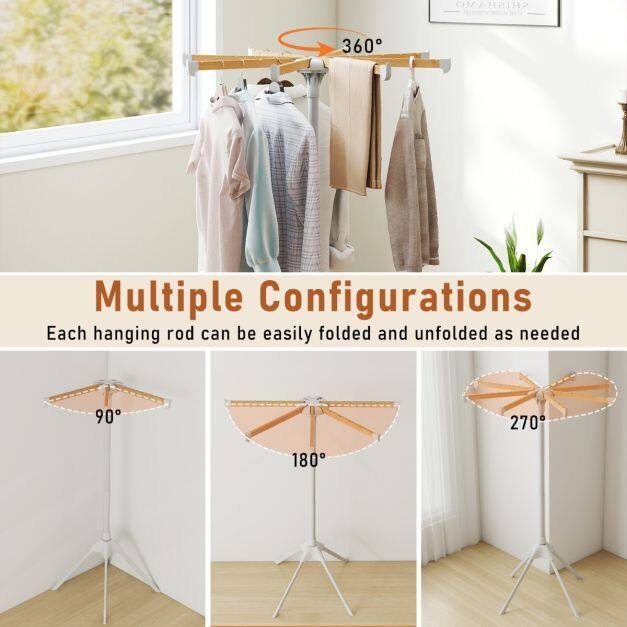 Dry your clothes easily and fold them effortlessly with our clothes drying rack! Featuring 8 bamboo rods and 40 hanger slots, this foldable drying rack can accommodate a variety of clothing types, offering hanging or flat drying options. Each rod easily folds and unfolds to fit your space, making this portable drying rack perfect for balconies, laundry rooms, or any other indoor space. Its lightweight, foldable design allows for easy storage and hassle-free transport, ideal for RV travel beyond indoor use.
