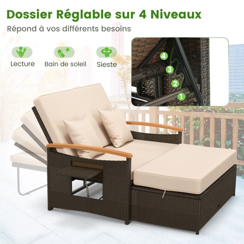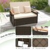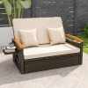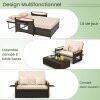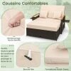 Outdoor Wicker Daybed with Folding Panels and Storage Ottoman-Beige