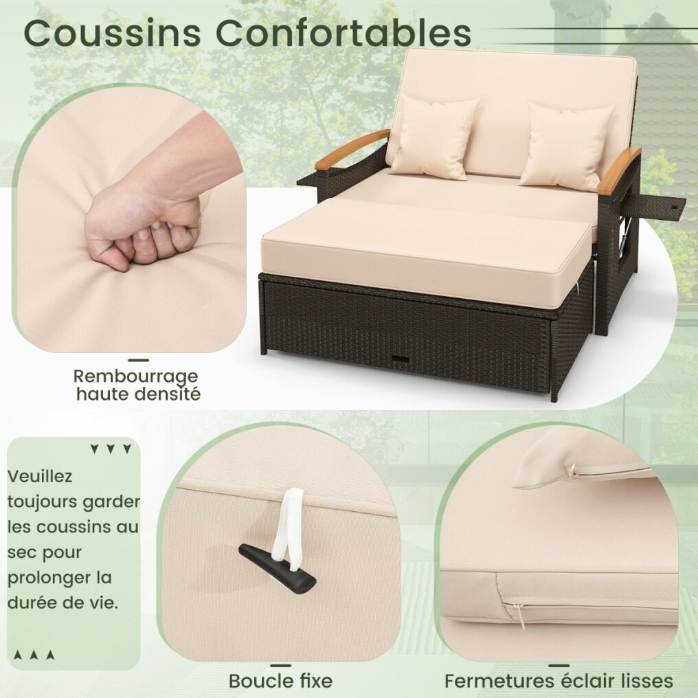 ● High Stability and Durability: Both the 2 pieces are supported by heavy-duty metal frame. And the reinforced supporting bracket ensures high safety when you lie flat. Additionally, this sturdy and cozy daybed set is designed with premium mix brown PE rattan for more elegance and durability.