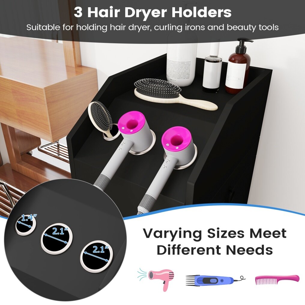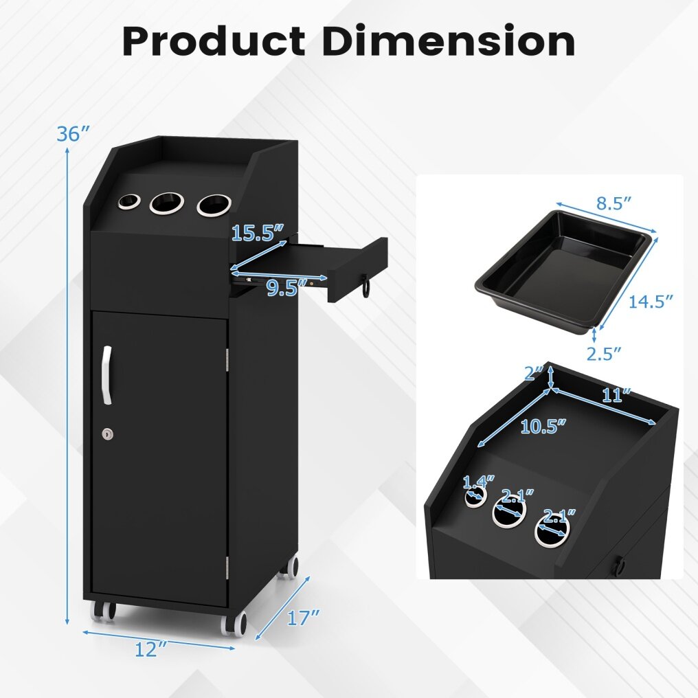 ● Extra Storage: The lockable tool cart features 3 hair dryer holders with different diameters, which are ideal for quick access during styling sessions (Caution: Do not place heated or recently used tools in the holders). Besides, there is a flat top with protective wall, providing a designated area for larger tools or equipment.