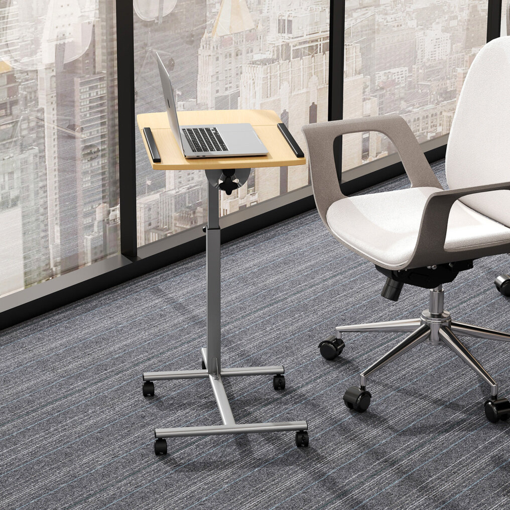 Height-adjustable laptop table: The laptop can be raised or lowered within a range of 71.5 to 91 cm. You can easily adjust the height according to your needs and then secure it with the locking mechanism, so the tilting bedside table provides you with a more comfortable position for easier working.