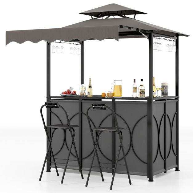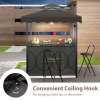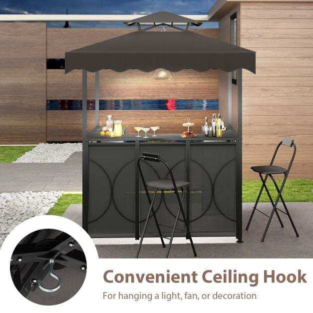 ● Extra Bar and Chairs Set: The grill gazebo features a built-in bar table and 2 sleek bar chairs, elevating your outdoor entertainment. This integrated setup is an ideal addition for various outdoor activities, such as hosting barbecues, cocktail parties, or simply enjoying drinks in the open air.