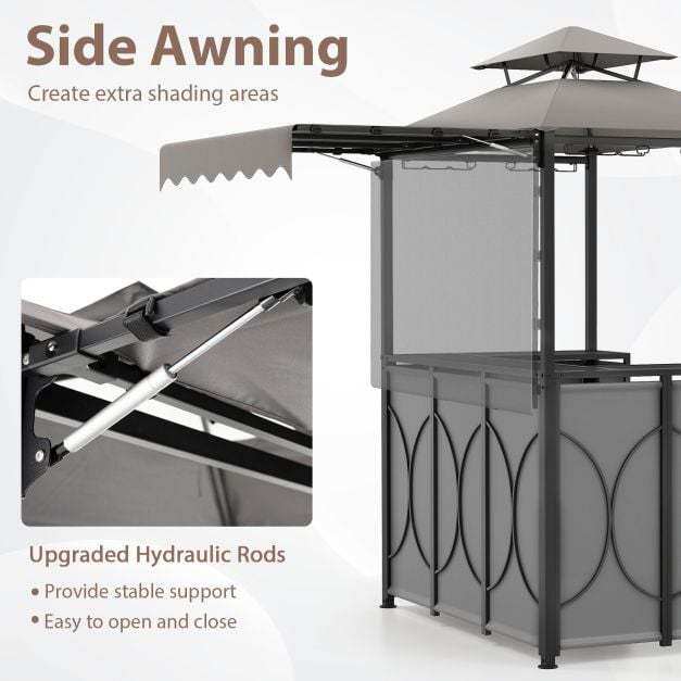 ● Innovative Awning Addition: Enjoy extended comfort with the side awning of this gazebo, creating extra shading areas. This awning incorporates upgraded hydraulic rods, which provide stable support while making it easy to open and close.
