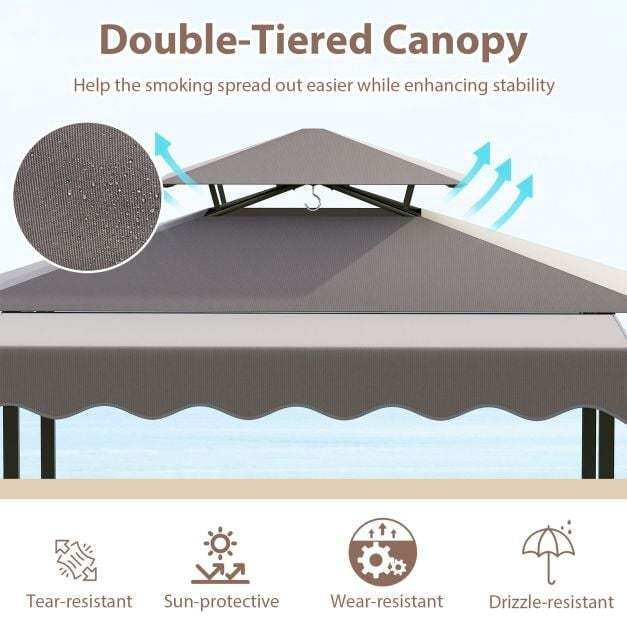 ● Premium Double-Tiered Canopy: The barbecue shelter is engineered with a vented top that helps the smoking spread out easier while enhancing stability. Plus, the canopy is made of premium polyester fabric, providing reliable protection from the elements, built to last.