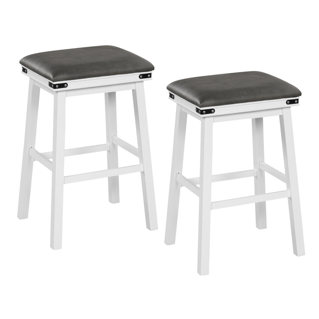 ● Well-Made Barstools: These 2 sturdy and cozy barstools also feature convenient footrests for more comfort. And the anti-slip footpads avoid scratches to your floor. Plus, the decorative rivets on the 4 corners make the stools more appealing.