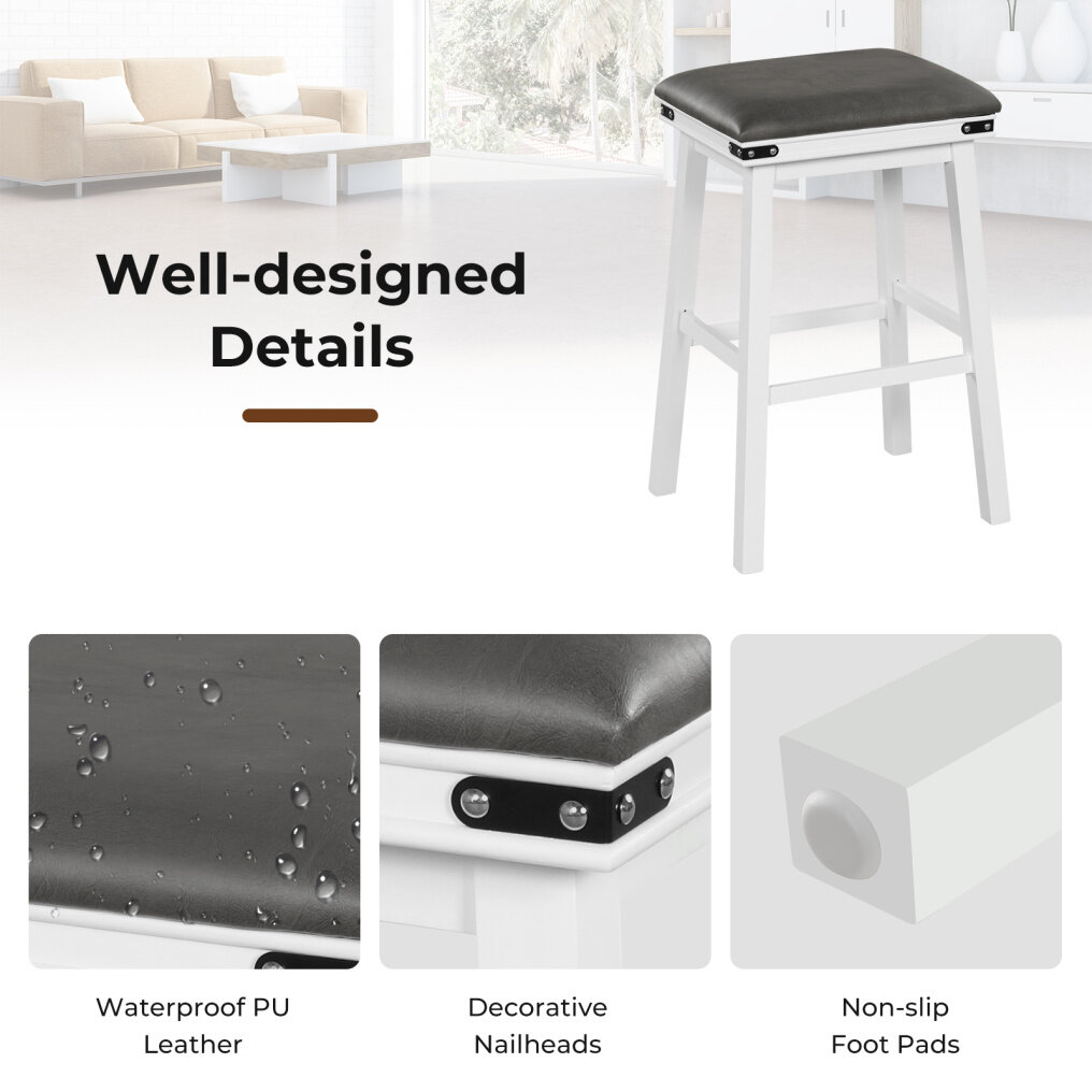 ● Comfortable Padded Seat: Filled with high-density sponge which is soft and elastic, the seats of the barstools offer you better sitting experience. And the waterproof PU leather cover is not only skin-friendly, but also easy to maintain.