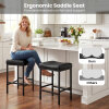 ● Saddle Comfort Fit: The ergonomic saddle seats follow natural curves for supportive seating, and the 3.5" thick cushion stays soft during long chats. Plus, the built-in footrests help relax your legs, making these bar stools easy to enjoy daily.