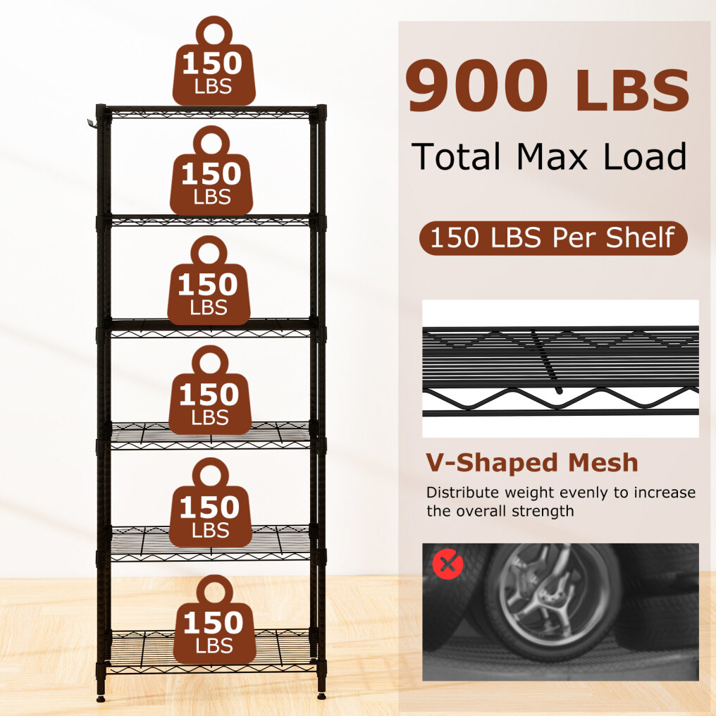 ● Heavy-Duty Metal Construction: Crafted from thickened metal tubes with a reinforced V-shaped mesh design, our heavy-duty wire shelving unit delivers exceptional strength and durability. It supports up to 1000 lbs total and 250 lbs per shelf, ensuring reliable storage for various industrial and household needs.