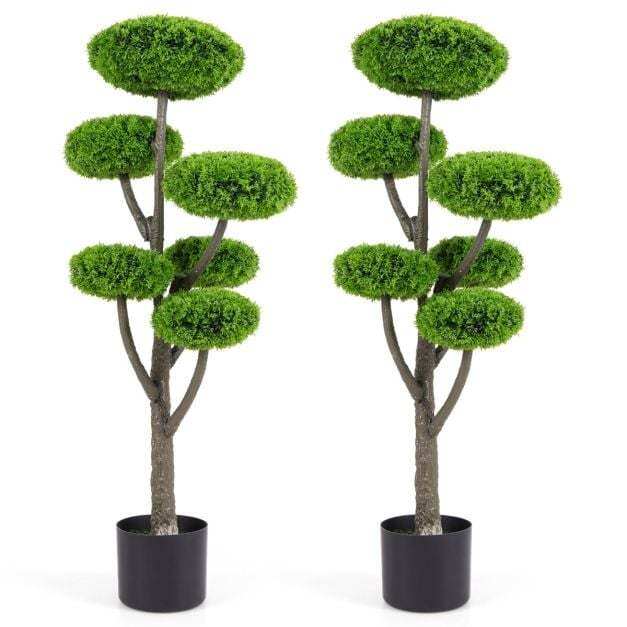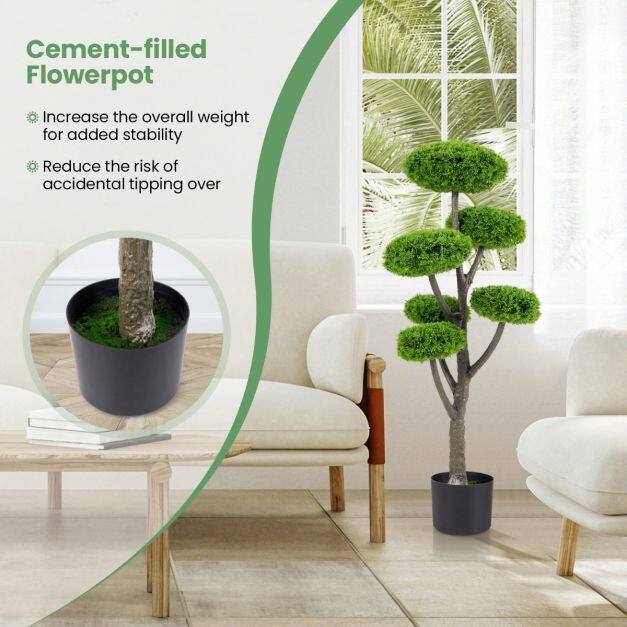 Bring vitality to your space with our faux topiary boxwood ball tree! The lifelike faux cypress tree features lush leaves, six balls, lifelike trunk, and faux moss, creating a stunning visual appeal that can complement any space. Whether you place it in your living room, office, or outdoor patio, this faux tree will spruce up your space. Crafted from PE material, the fake topiary tree will emit no odor cause no allergy, which is safe for indoor use. Meanwhile, the tall fake shrub cedar plant is sun-proof and non-fading, allowing for outdoor decoration. More importantly, you can enjoy the beauty of the potted faux green plant without careful maintenance, including watering and exposure to sunlight. The flower pot of our cypress tree is thoughtfully weighted with cement to provide stability, keeping the tree securely in place.