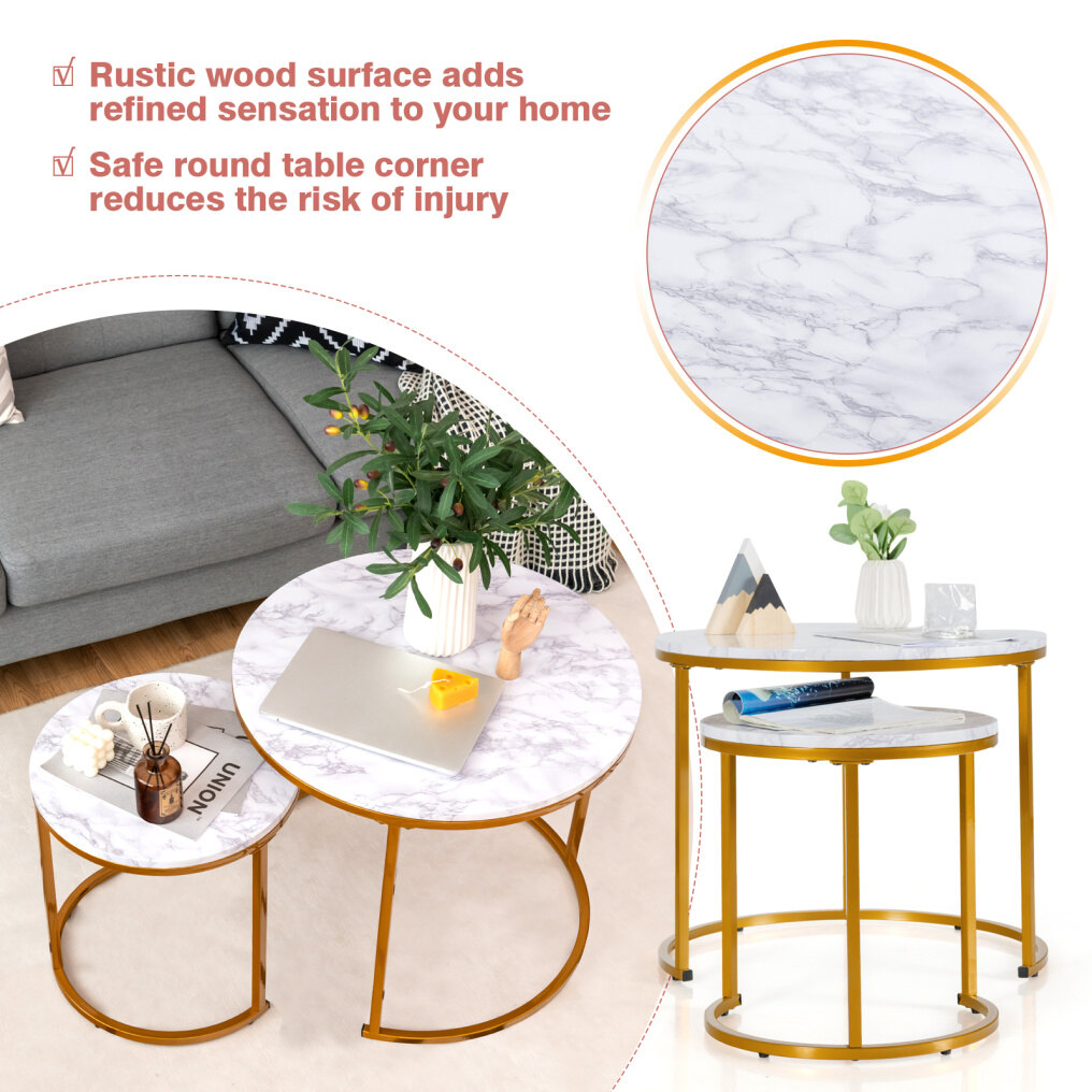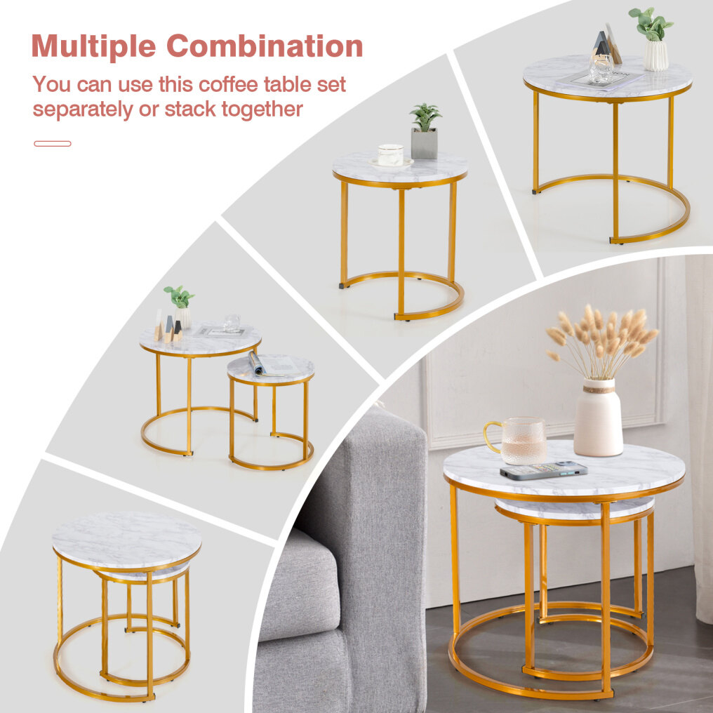 ● Durable and Stable Structure: The MDF tabletop ensures great durability and long service life. Thanks to the powder-coated frame, the coffee table set features good sturdiness and is not easy to shake. What' s more, the round base and adjustable foot pads enhance its overall stability.