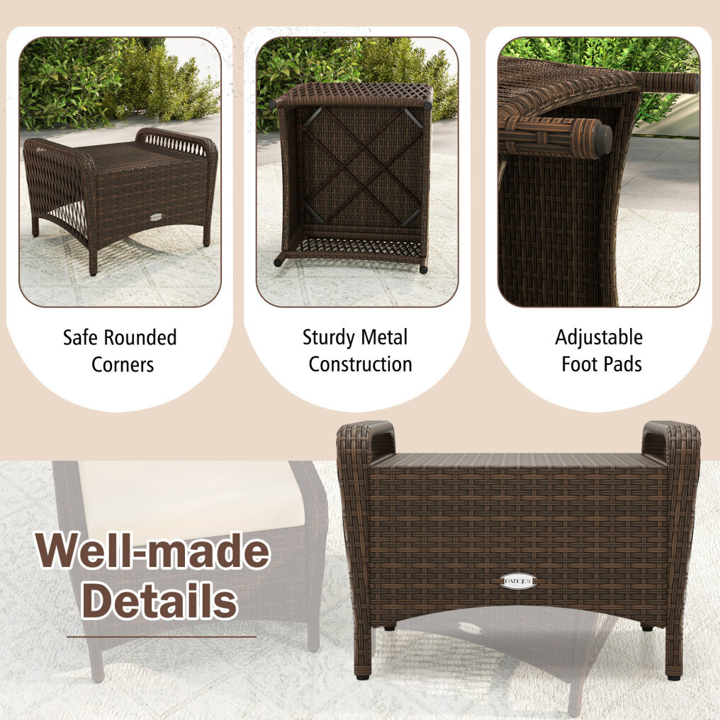 ● Selected PE Rattan: Each patio ottoman is meticulously hand-woven with premium PE rattan, known for its fade-resistant and sun-protective properties, enhancing its outdoor durability.