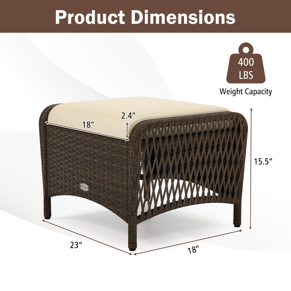 ● Perfect Dimensions: With dimensions of 18"L x 23"W x 15.5"H, these outdoor footstools are designed to fit perfectly with your existing patio chairs or sofas (not included) in your porch, garden or backyard. Please avoid rain exposure for prolonged service life.