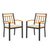 ● Metal and Wood Combine Frame: The patio dining chairs set of 2 is made of solid metal frame, which ensures a large load-bearing of 400 lbs. Moreover, the backrest and armrests are crafted with premium acacia wood, which exudes natural beauty without compromising durability.