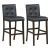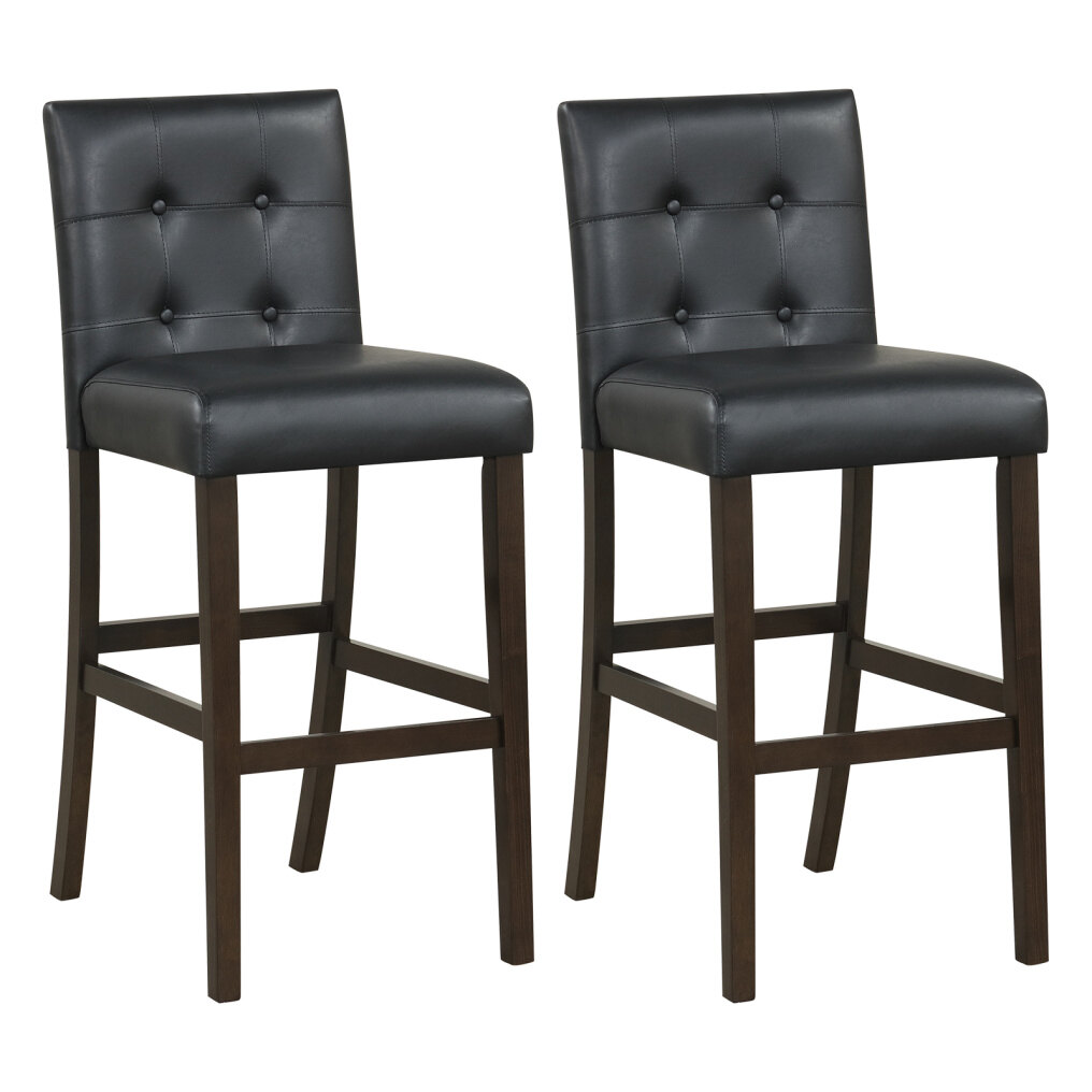 Set of 2 PVC Dining Leather Bar Stools with Solid Wood Legs-29 inches