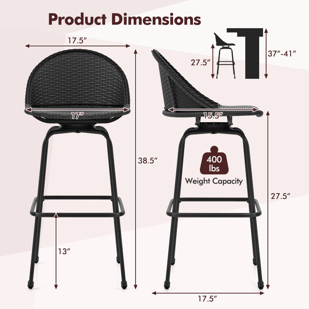 ● 360° Swiveling Seat: Experience the ultimate comfort and convenience with these 2 patio counter stools featuring a 360-degree swivel design. With safe and smooth spinning, these chairs allow you to engage effortlessly into conversation or gathering.