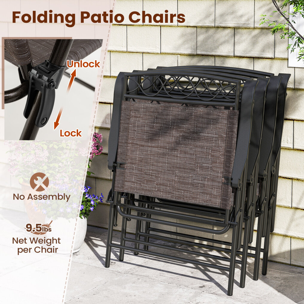 ● Folding Convenience: These patio chairs can be folded into compact sizes, making them easy to transport and store. Just toggle the locking devices upwards for unlocking and easy folding. Plus, they require no assembly for great convenience.