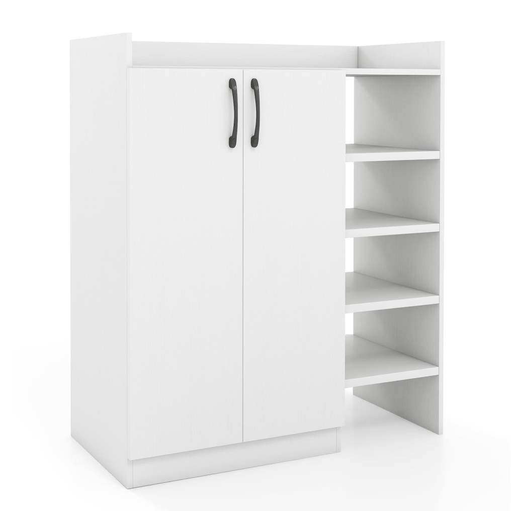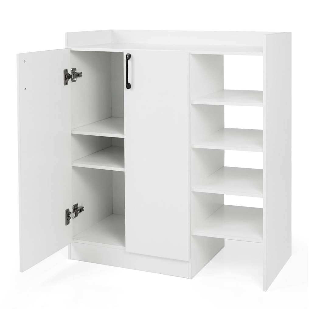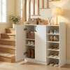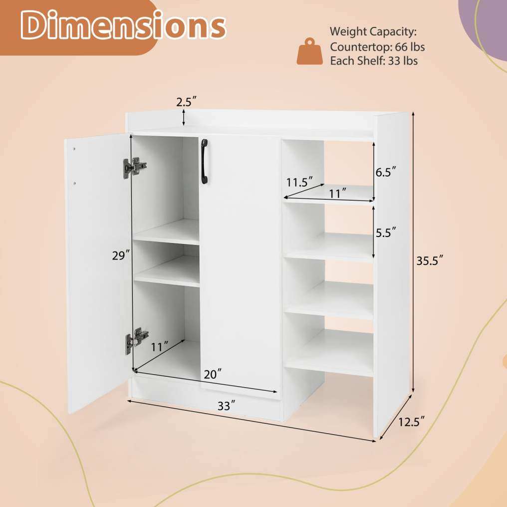 ● Ample Storage Solution: This shoe cabinet features a 2-door cabinet and 4 open shelves, providing ample space to organize various types of shoes. The spacious countertop is perfect for placing handbags, keys, or decorative items.