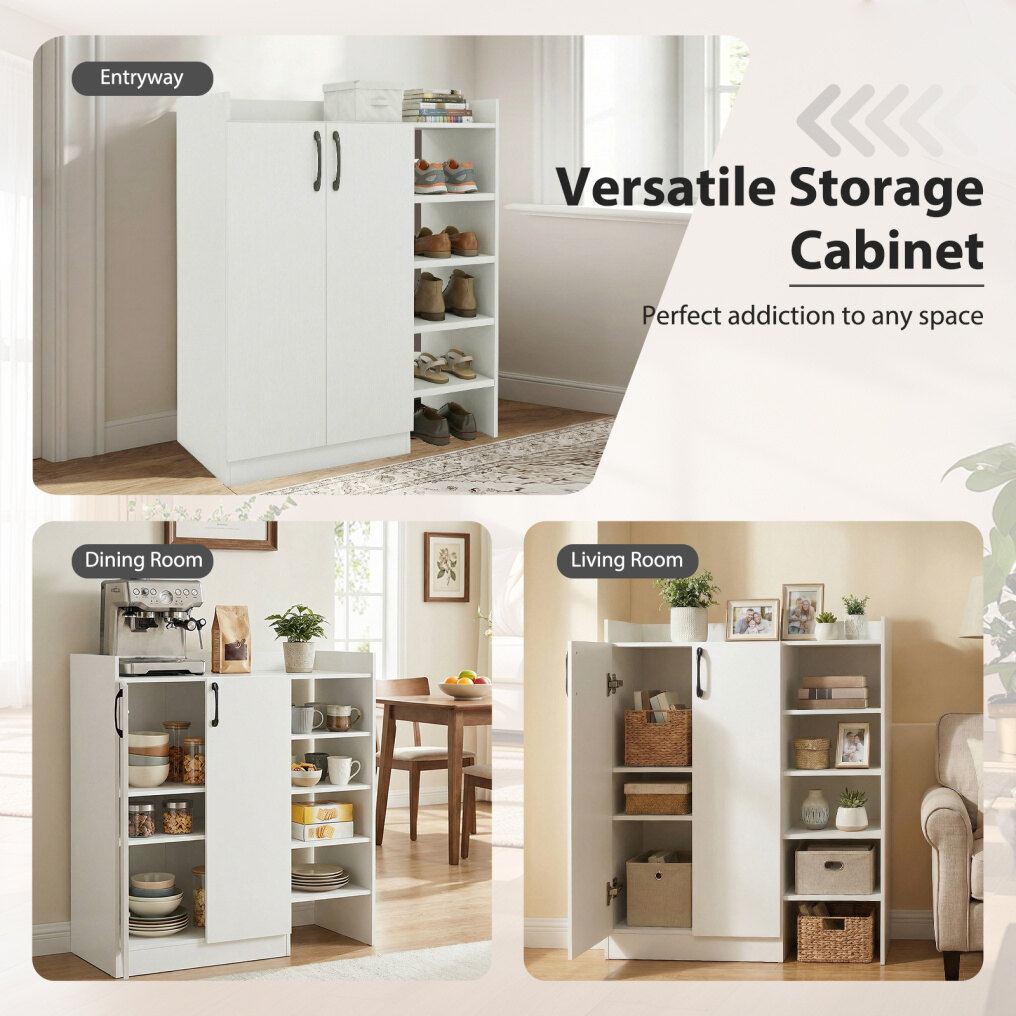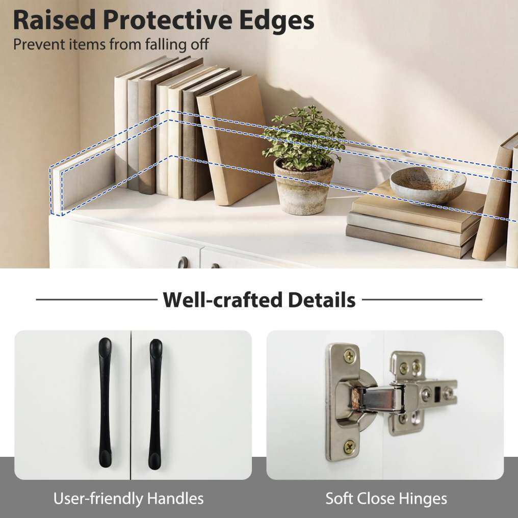 ● Customizable Inner Space: Inside the cabinet, you'll find 2 adjustable inner shelves with 7 height settings spaced 2.5" apart. The 2 shelves are also easily removable to offer versatile storage options to maximize space efficiency.