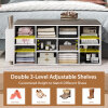 Adjustable Cubby Storage: Since the storage bench has 10 wide cubes, you can keep plenty of shoes neatly organized. More, they come in different sizes (6 small & 4 big), while featuring 2 3-level adjustable shelves to better store flat shoes, high heels, mid boots, etc.