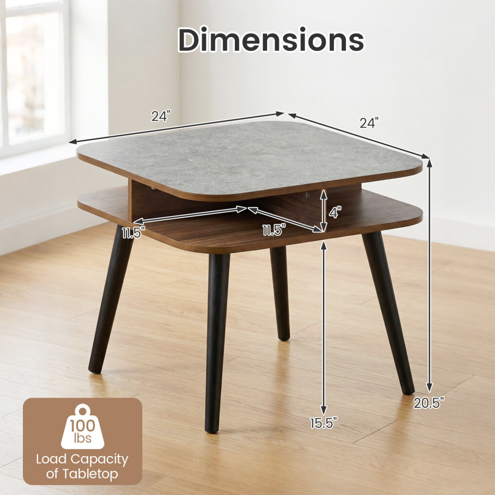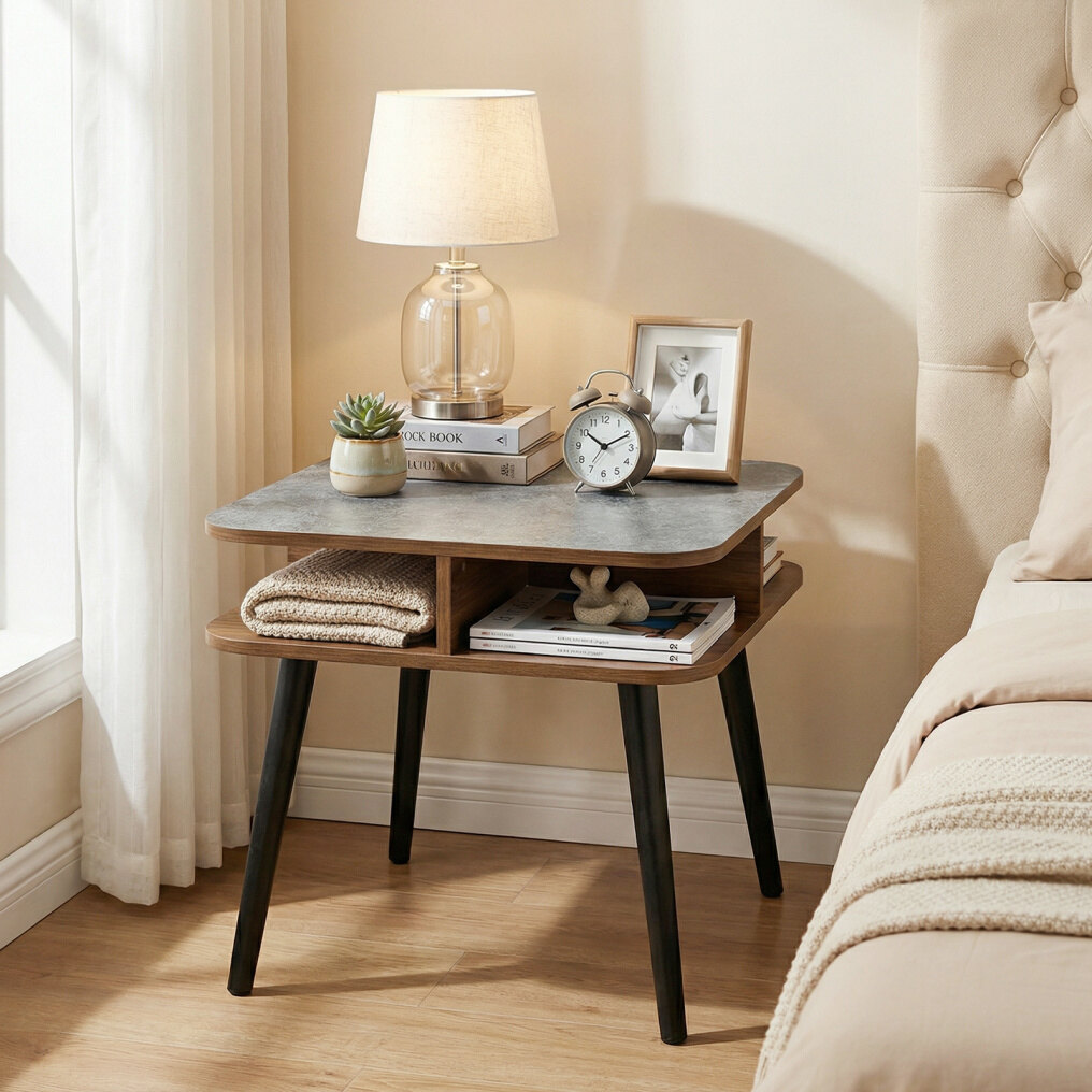 ● Versatile Storage Solution: Featuring a spacious square tabletop and practical 4-sided shelving, this end table offers plenty of space to organize your everyday essentials. In addition, it keeps your stored items within easy reach.