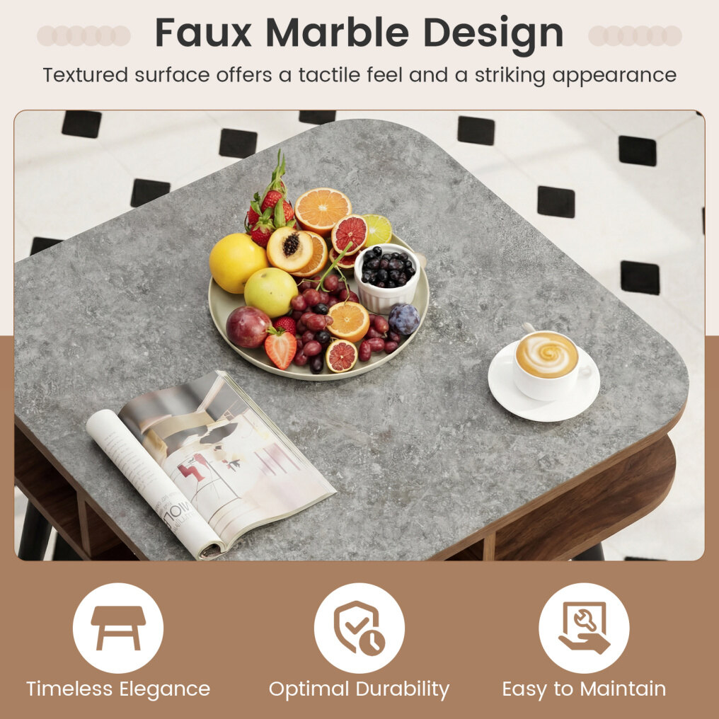 ● Faux Marble Textured Surface: Upgrade your space with this side table's faux marble surface that offers both a tactile feel and striking visual appeal. The realistic marble pattern adds luxury to any decoration, making it an elegant choice for your home.