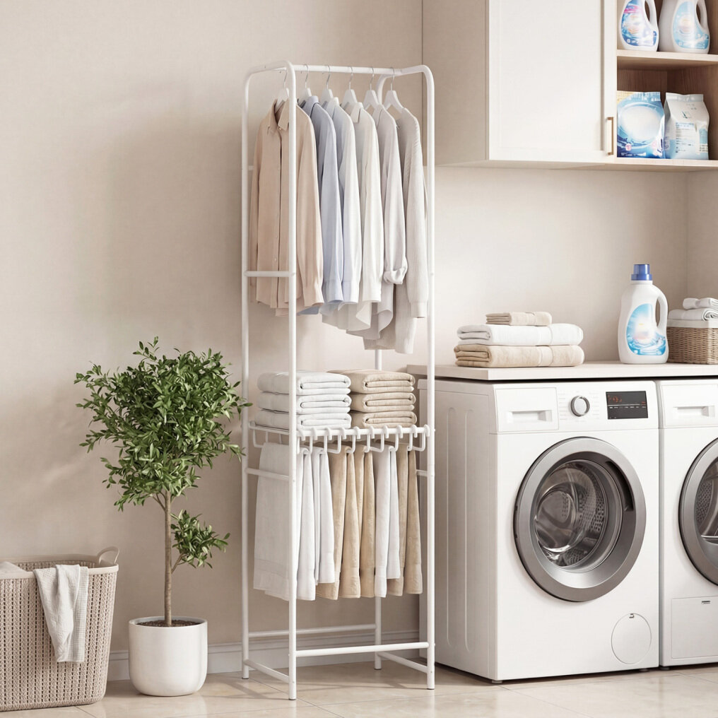 ● Modern Elegance: With clean lines and minimalist design, this metal clothes rack blends easily with many home styles. Perfect for bedrooms, closets, laundry rooms, or hallways, it provides practical storage and adds a modern touch to your space.