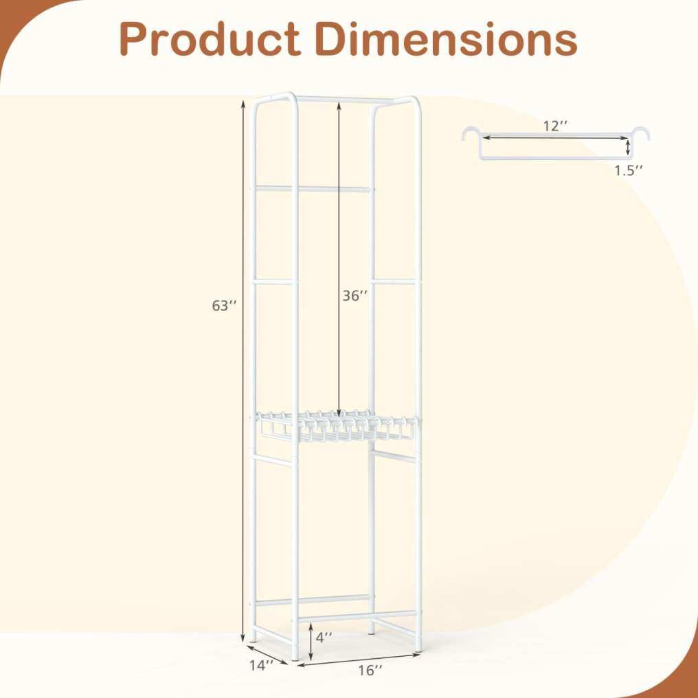 ● Small-Space Friendly Design: Measuring 14" x 16" x 63", this narrow coat rack takes up minimal floor space while maximizing vertical storage. The compact freestanding garment organizer is perfect for places where efficient clothing organization is essential.