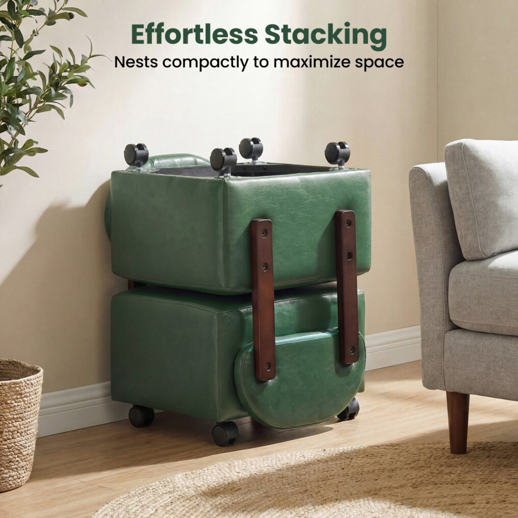 ● Easy Mobility and Robust Build: Equipped with 360° swivel wheels with brakes, these square ottomans allow effortless movement to wherever you need support, and then secure firmly for added safety. Built for dependable strength, each stool supports up to 330 lbs.
