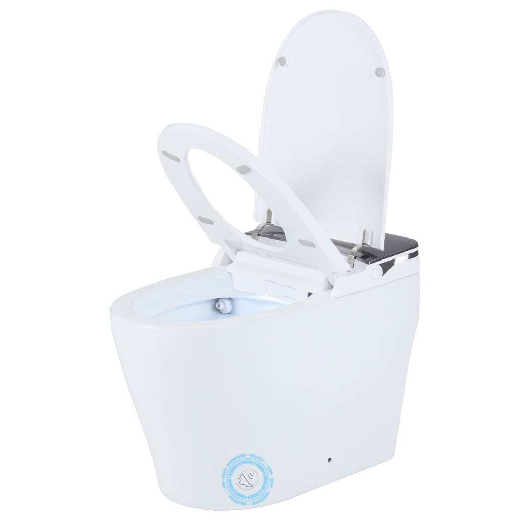 ● Hands-Free Smart Operation: Designed for effortless hygiene, this smart toilet includes a soft-close lid that auto open upon detecting presence, and auto close after 2 minutes of vacancy. Additionally, foot kick sensors allow hands-free opening and closing of the lid and seat ring, and flushing, enhancing both convenience and sanitation.