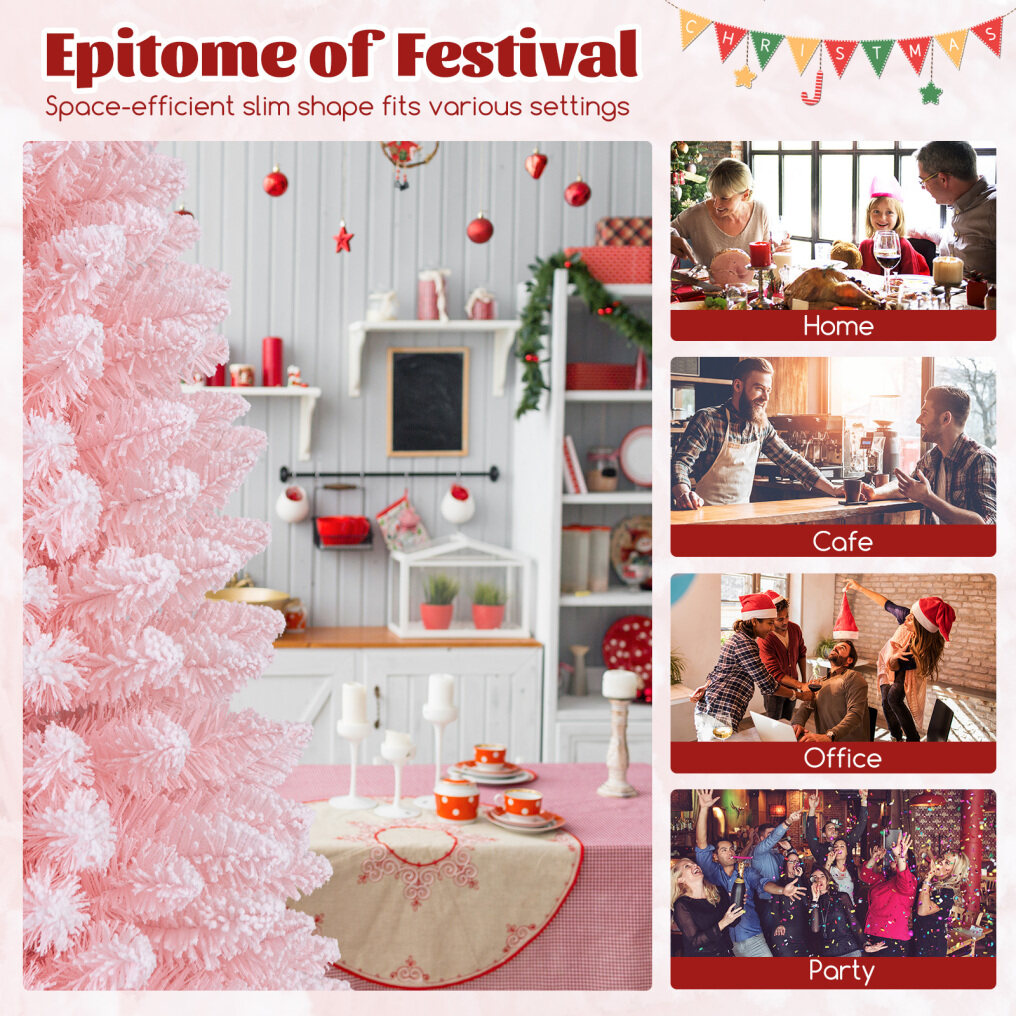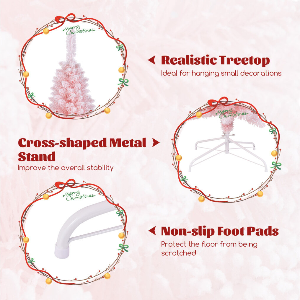 • Full and Attractive Appearance: Equipped with 1000 branch tips, the slim Xmas tree exudes a lush appearance. Moreover, the snow flocked Christmas tree comes with delicate pink leaves that sets it apart from traditional Christmas trees.