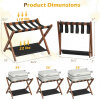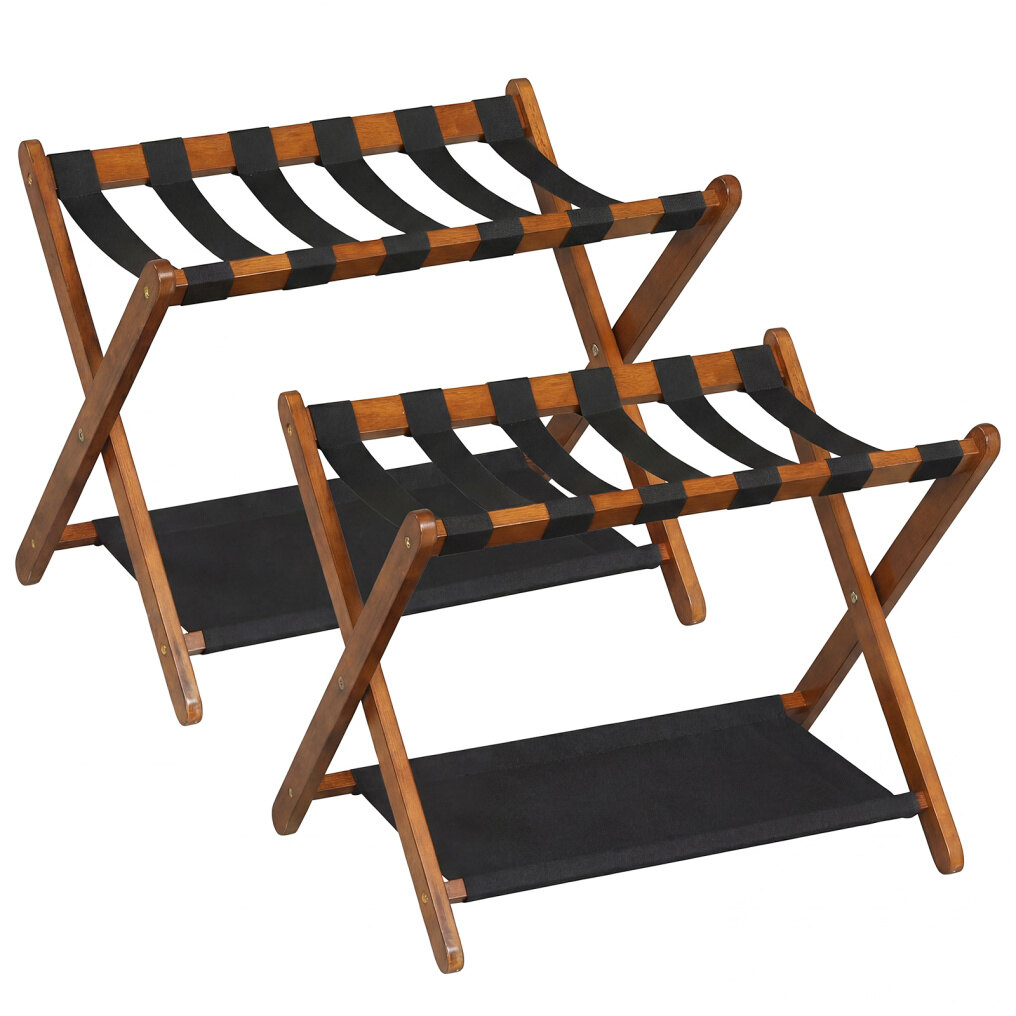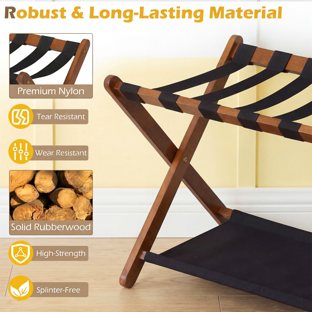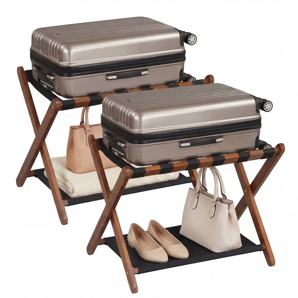 ● 2-Tier Storage Space: This folding luggage rack adopts double-layer design. The top layer accommodates luggage sizes from 61 cm to 71 cm comfortably. And the lower layer is perfect for organizing shoes, handbags, or other travel essentials neatly off the floor.