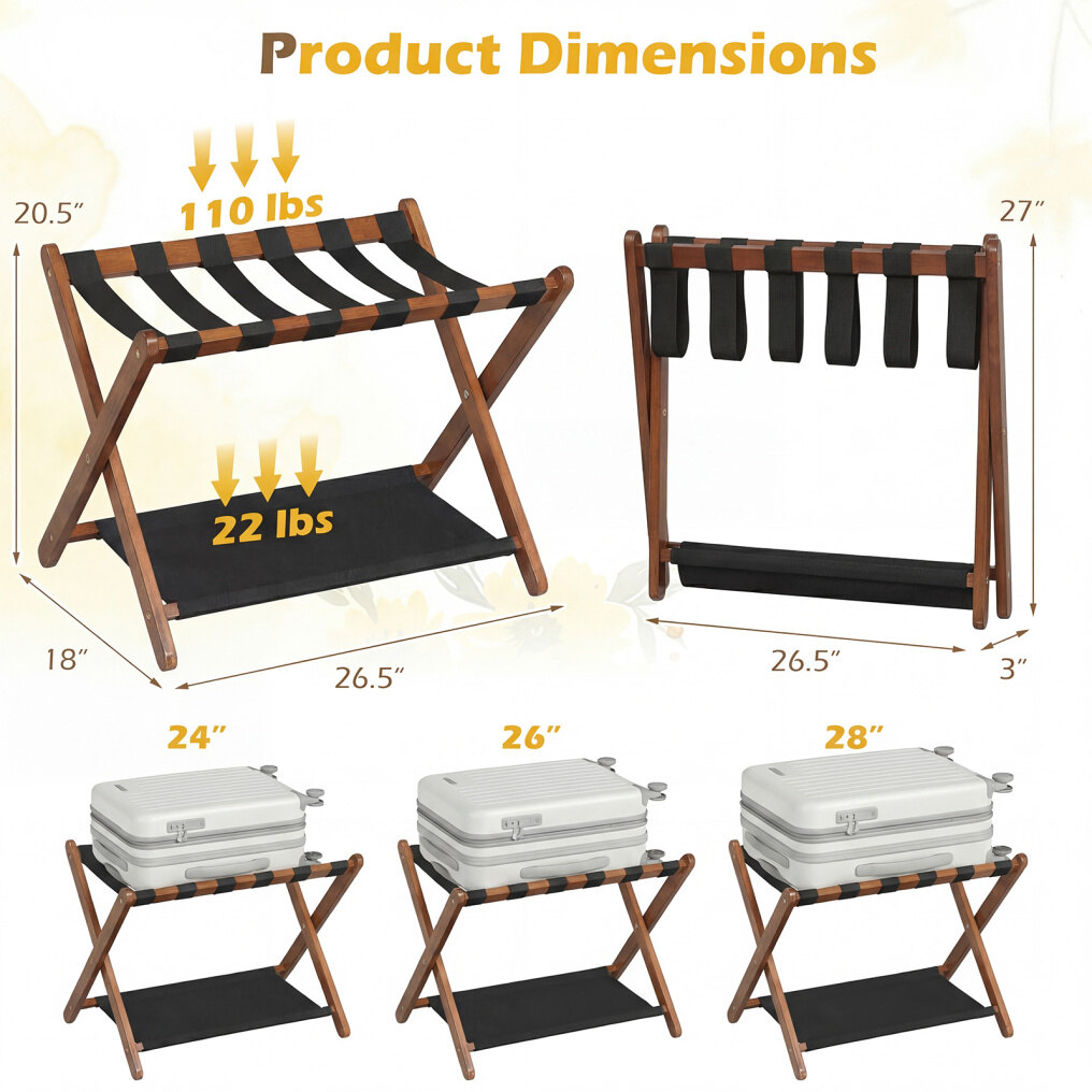 ● Multi-Purpose Holder: Measuring 26.5” x 18” x 20.5”, this wood stand with high practicability and portability is an ideal addition for bedrooms, guest rooms, hotels, and other occasions.