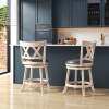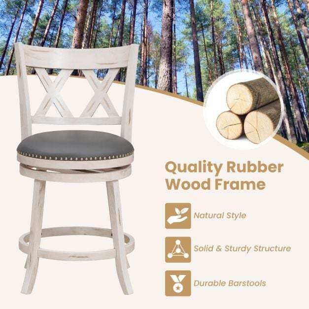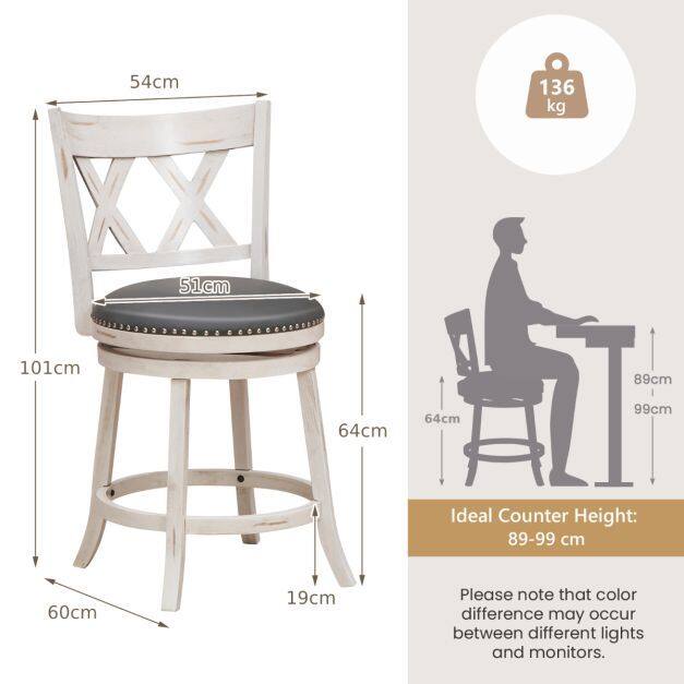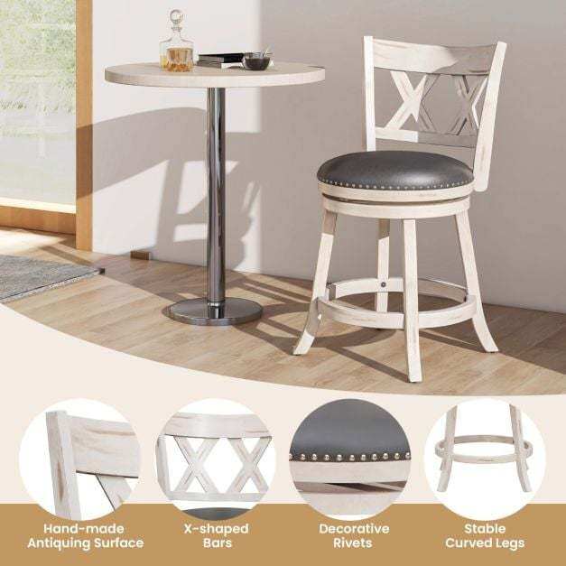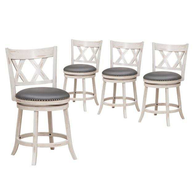 It has a hand-antiqued surface, an X-shaped design and attractive rivets. And the swivel seat provides a fun alternative to any boring seating and brings more convenience. With a curved backrest, upholstered seat and round footrest, it offers you a comfortable sitting experience. Moreover, the premium rubber wood frame makes each stool strong and durable enough to bear a weight of up to 300 lbs. If you are looking for such a product, do not hesitate to buy it!