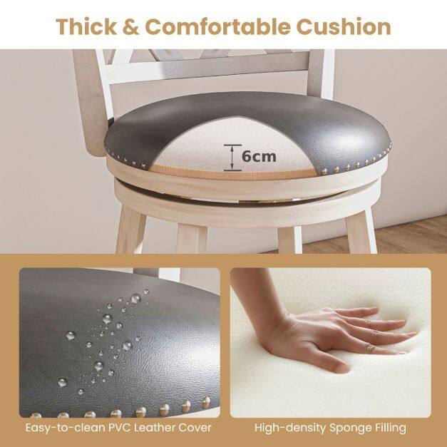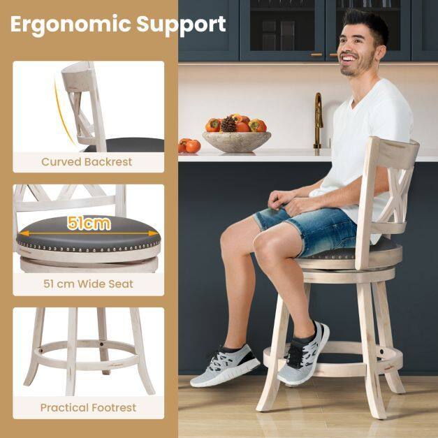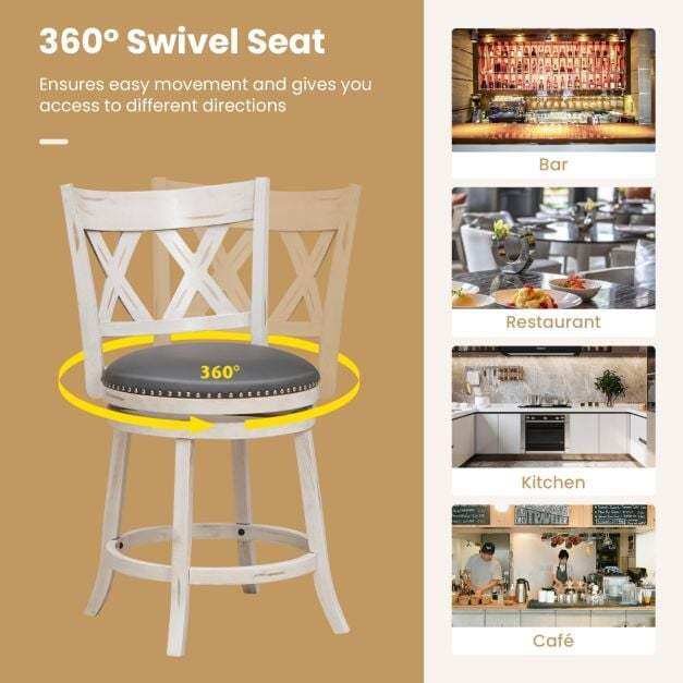 360-Degree Swivel Seat: Each counter height stool has a 360° swiveling seat, which ensures flexible mobility. You and your guests can conveniently turn around to get what they need without getting up.