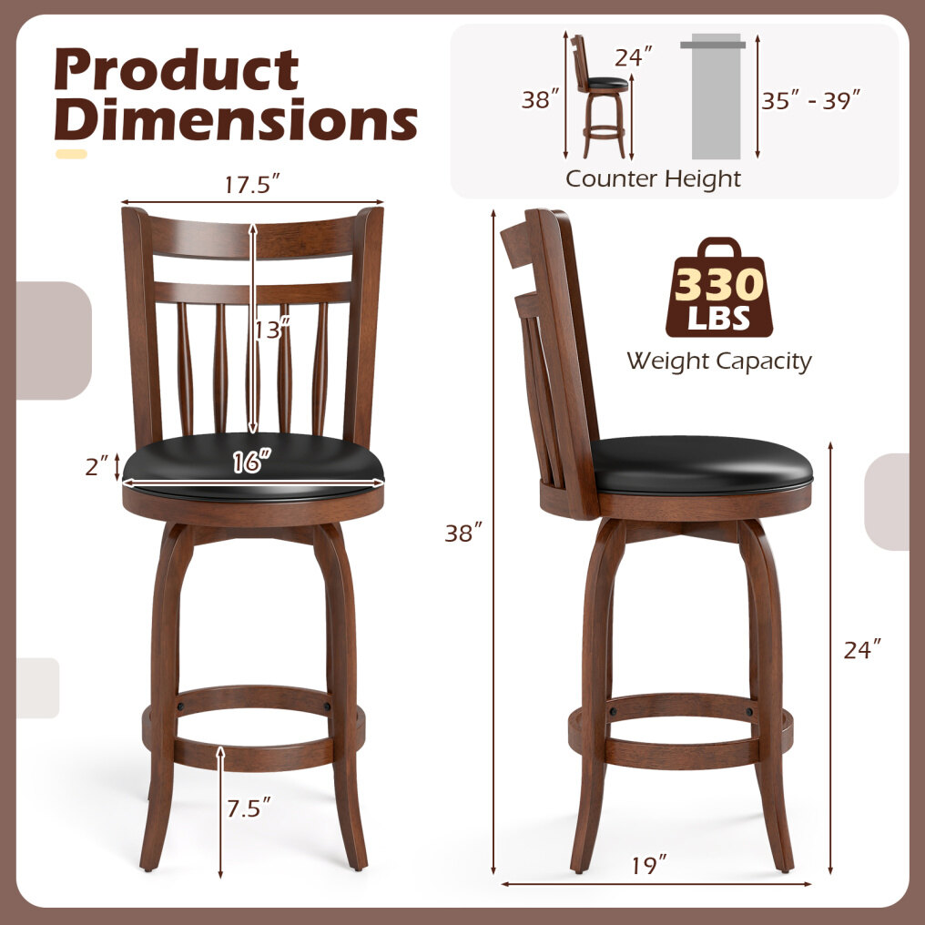● Sturdy Construction: Built with a solid rubber wood frame, these solid wood bar chairs can support up to 330 lbs per seat. Plus, the reinforced X-shaped structure adds extra stability and durability.