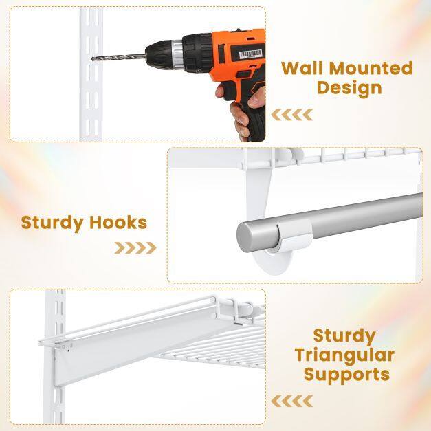 【Easy Installation】The organization shelf comes with detailed installation instructions and videos, making the installation process simple and quick. With a wall-mounted design, the adjustable wire shelf is an ideal closet organization kit for bedroom, laundry room and other spaces.