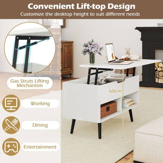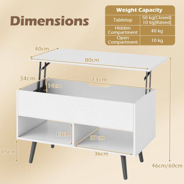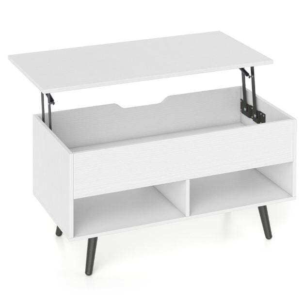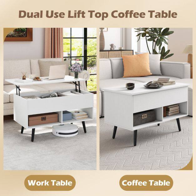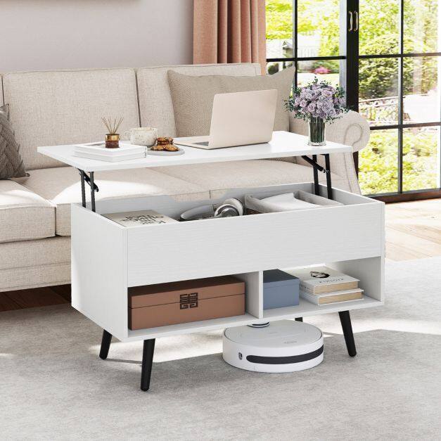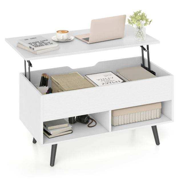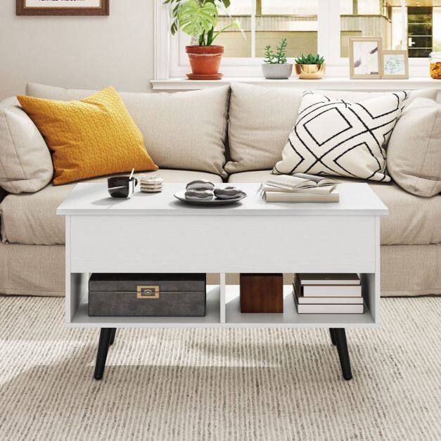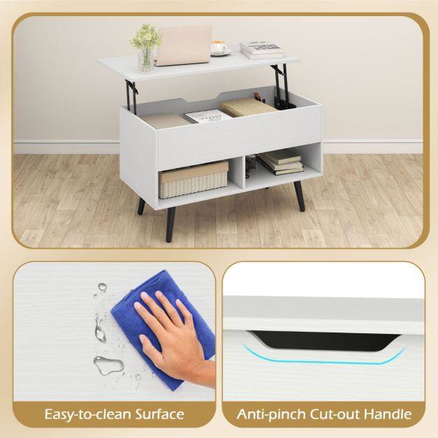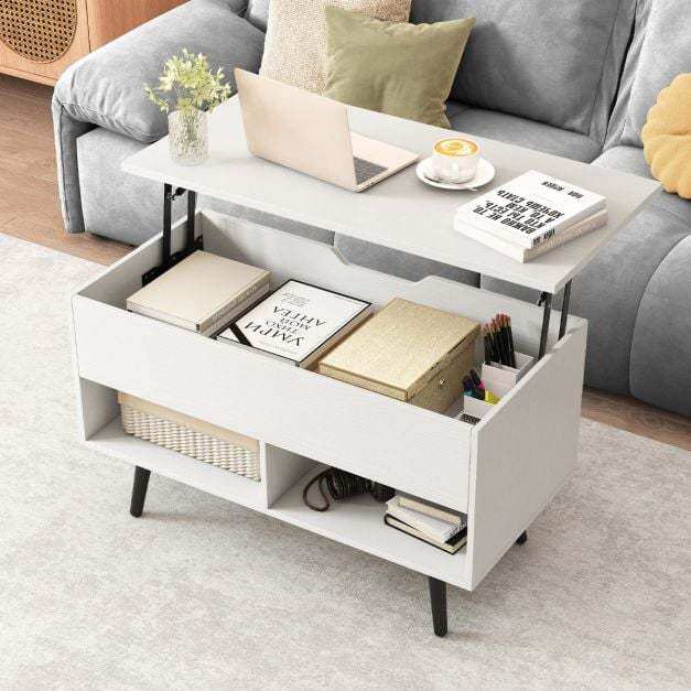 Convenient Storage Solutions: Keep your lifting center table clutter-free with ample hidden storage beneath the lift-top, where you can easily tuck away laptops, remotes, and other items. Additionally, the table features 2 open cubbies, perfect for storing magazines or decorative pieces, maintaining a tidy and stylish appearance.