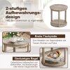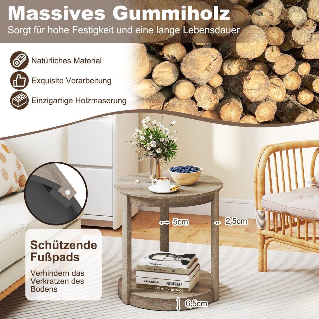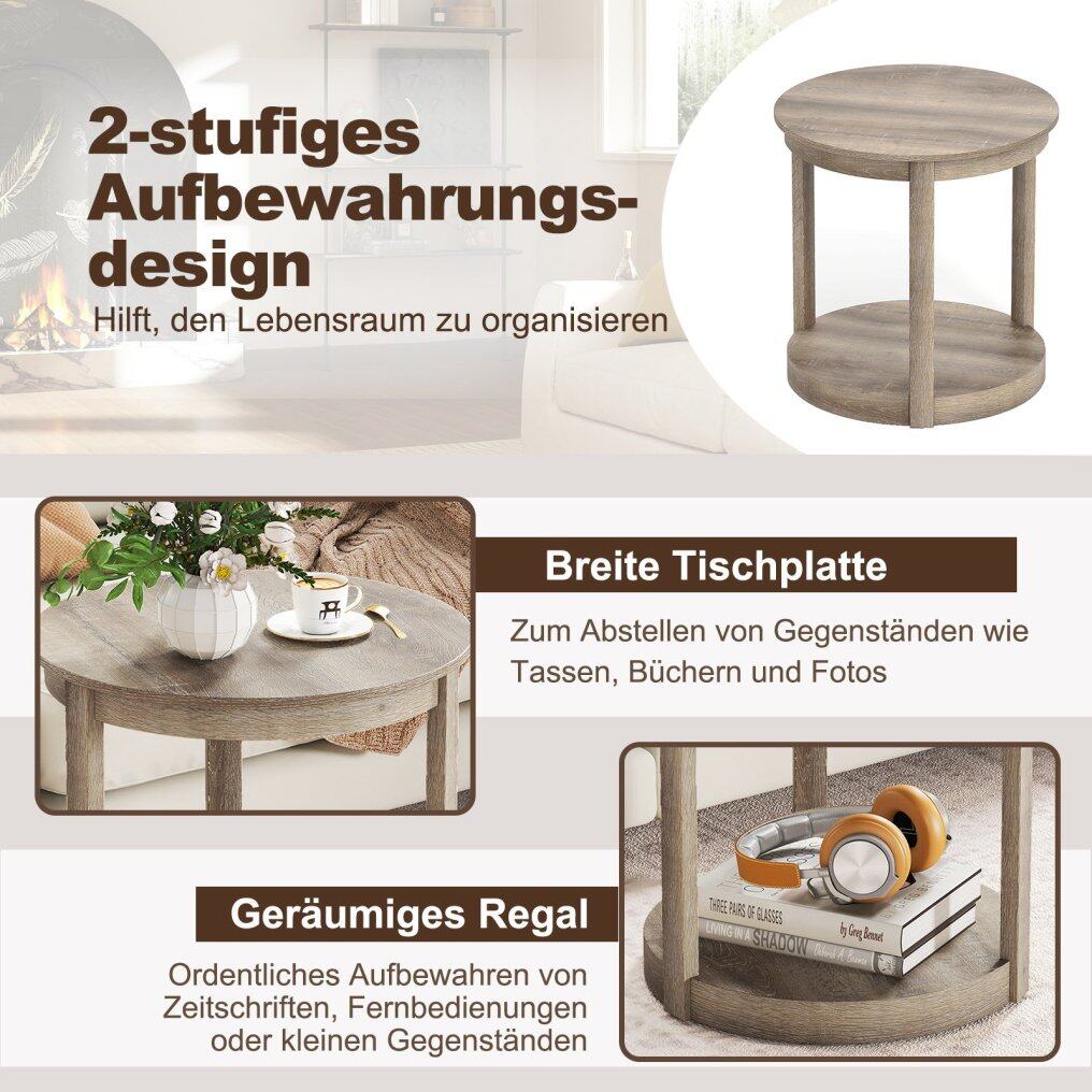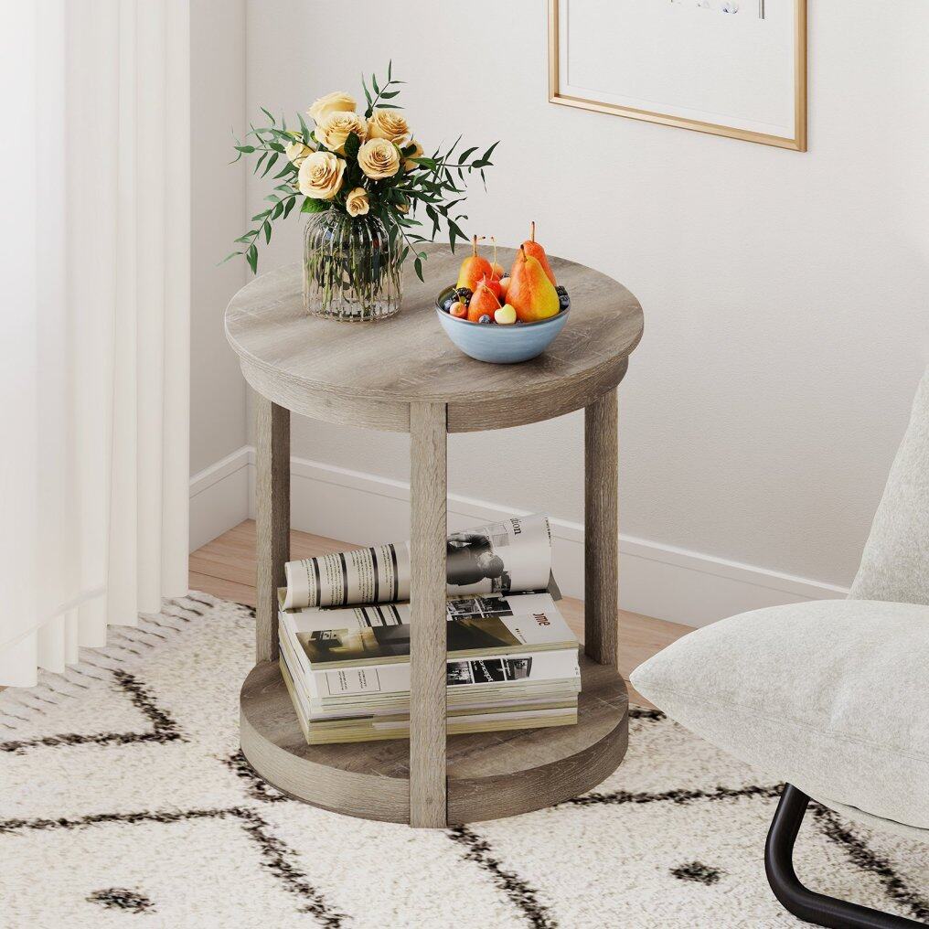 With its 2-tier design, the sturdy round coffee table offers ample storage space for your daily necessities, books, and decorations. Crafted from natural material, the rubber wood legs promote a total load capacity of up to 350 lbs. Additionally, the coffee table comes with protective pads. The charming farmhouse style adds a welcoming touch to any room, from traditional to modern spaces. Its adaptability allows it to serve as a versatile piece - a coffee table in the living room or a nightstand in the bedroom. The easy-to-clean surface ensures quick maintenance, making it an ideal choice for busy families.