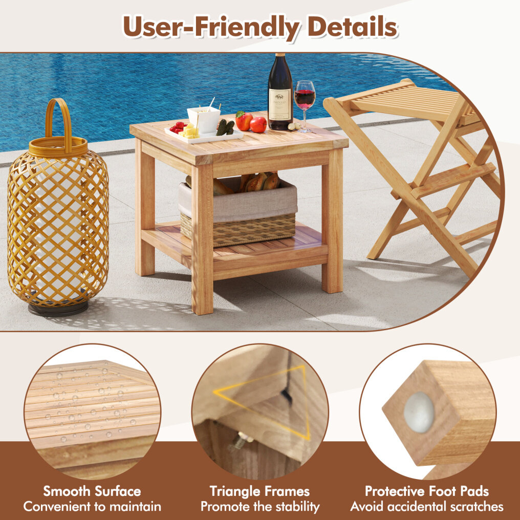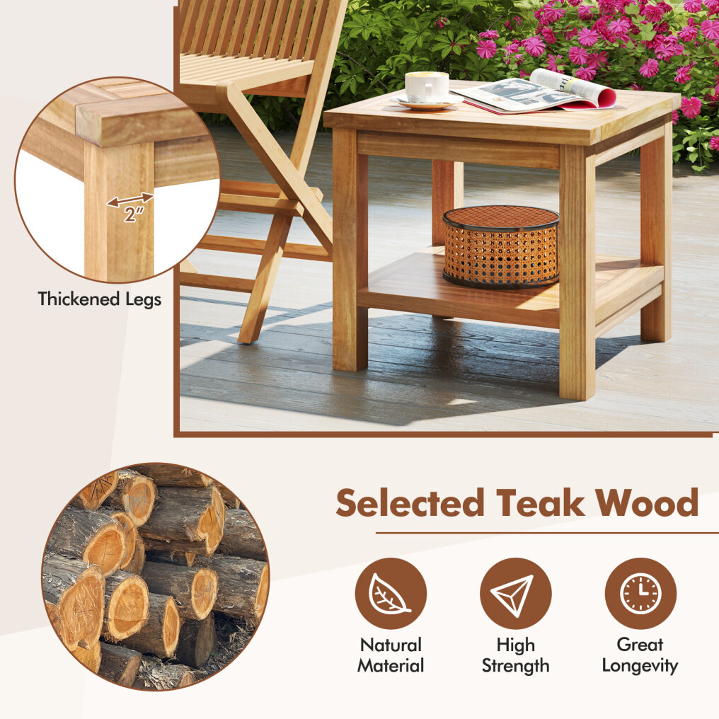 ● Sturdy Construction: Crafted from solid teak wood with 2" thickened legs, the tabletop supports up to 110 lbs. The side table ensures longevity and stability for all your needs.