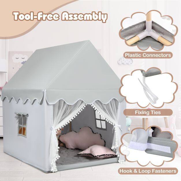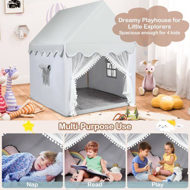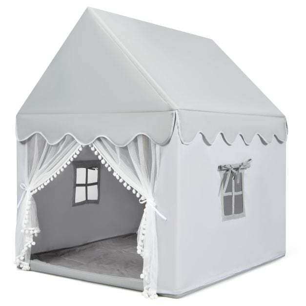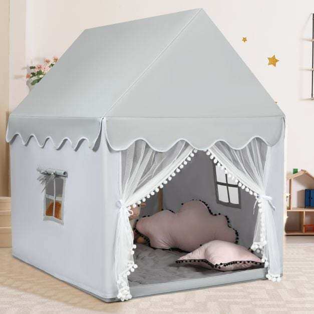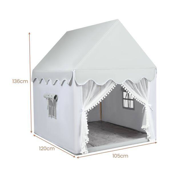 【Fairytale Design】This play tent features a wavy canopy, gauze curtains with pom poms and 2 side "peekaboo" windows that transform any room into a dreamy indoor playhouse. Kids love playing endless hide-and-seek in it.