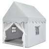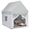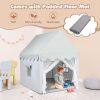 Transform your child's room into a magical play paradise! The kids' play tent beckons with its ultra-comfortable, washable rug and dreamy design with whimsical curtains and charming peek-a-boo windows. Perfect for up to 4 children, this spacious tent built with a solid wood frame ensures years of imaginative play and safety. From exciting games of hide-and-seek to serene reading time, this versatile tent adapts to every mood and activity. Plus, assembly is a breeze—no tools required! Make every day a magical playday!