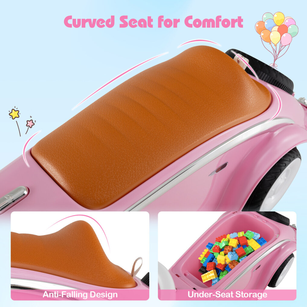 Curved Seat with Storage: This foot-to-floor car offers a curved seat for comfort and an anti-falling design for security. Beneath the seat, there is a storage compartment perfect for stashing your little one's toys and essentials, adding practicality to coziness.