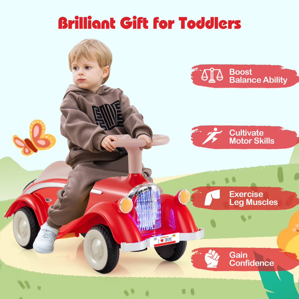 Brilliant Gift for Toddlers: With its retro charm, this ride on toy car is a fantastic gift for toddlers aged 19-36 months. Through riding adventures, little explorers can boost balance ability, cultivate motor skills, exercise leg muscles, gain confidence.